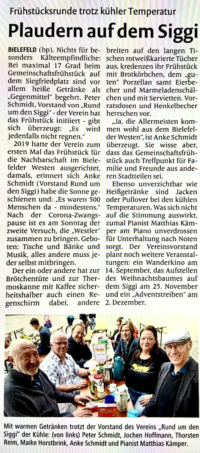 Neue Westfälische am 14.04.2023 - Frühstück für alle auf dem Siggi