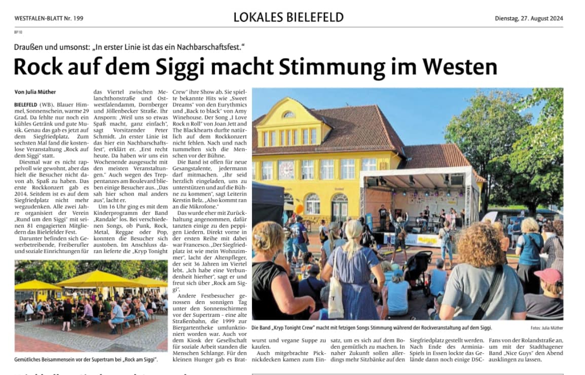 Westfalen-Blatt 27.08.2024 - Rock auf dem Siggi macht Stimmung im Westen