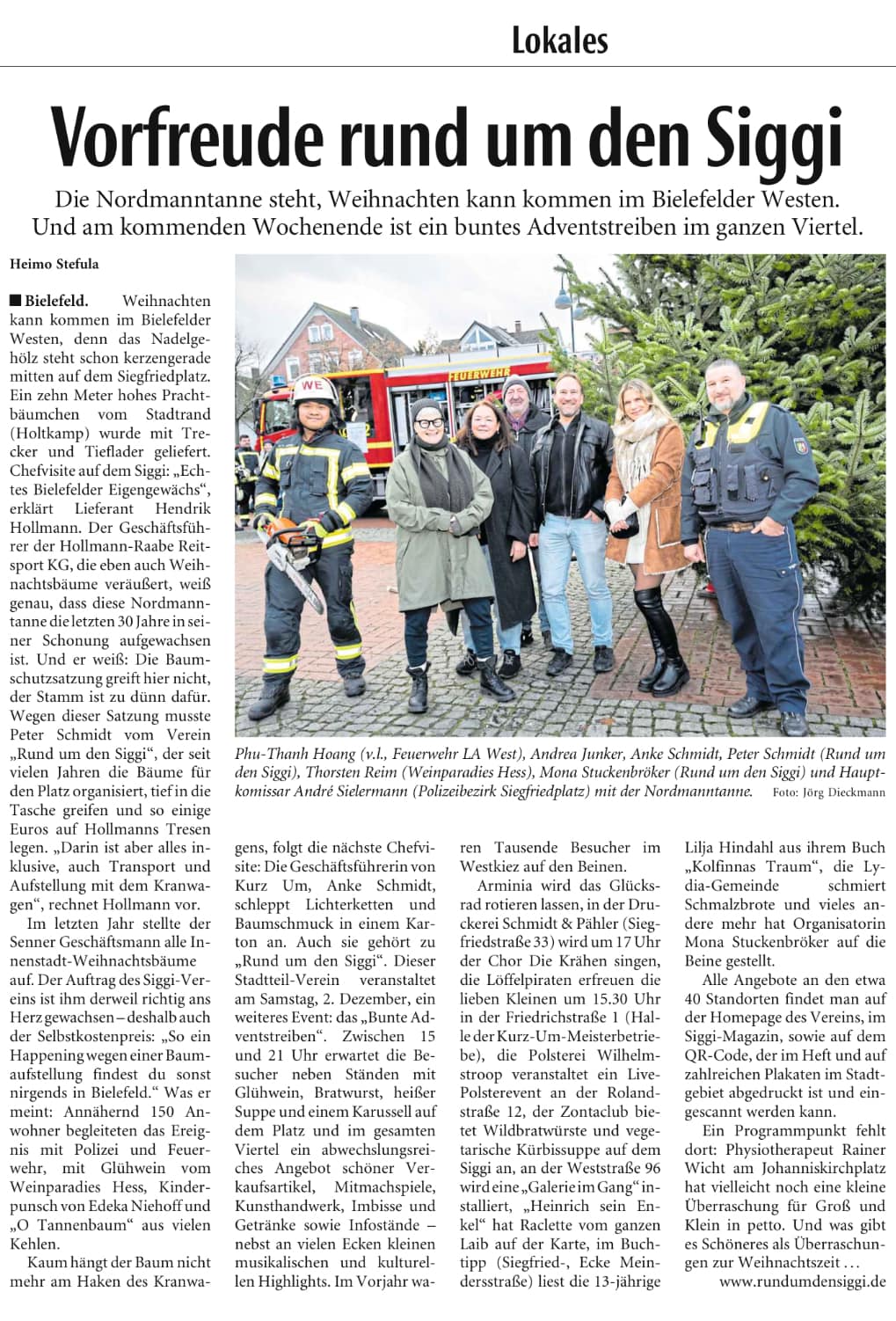 Neue Westfälische 28.11.2023 - Vorfreude rund um den dem Siggi