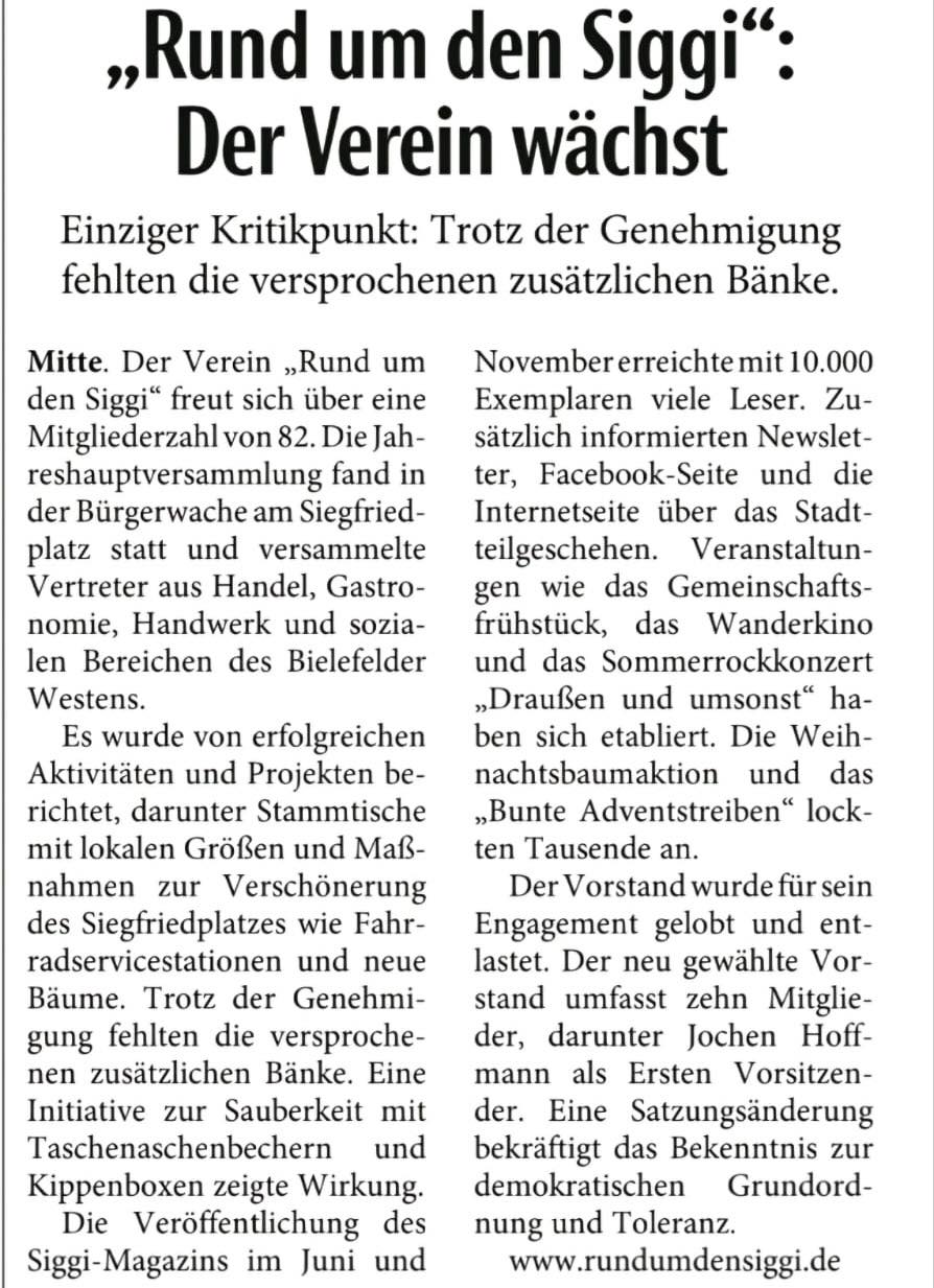 Neue Westfälische am 24.04.2019 - "Rund um den Siggi" hat gewählt