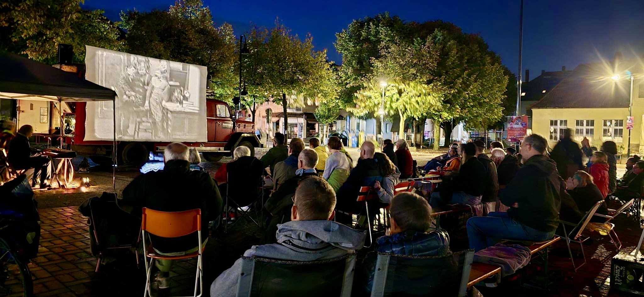 Gemeinsam mit dem Verein Bürgerwache laden wir jedes Jahr im Spätsommer zum Wanderkino auf dem Siegfriedplatz ein. Gezeigt werden Stummfilme, begleitet von Livemusik.